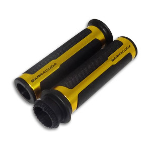 Κατασκευασμένα από ανοδιωμένο αλουμίνιο και ανθεκτικό καουτσούκ, προσδίδουν τέλειο κράτημα, άριστη εφαρμογή και αισθητική βελτίωση. Τα χερούλια έχουν μήκος 12 εκατοστά και πωλούνται σε ζεύγος. Περιλαμβάνεται το "κόκκαλο" και ο τεντωτήρας της γκαζιέρας. Διαθέσιμα σε τρία χρώματα: μαύρο, ασημί και χρυσό.