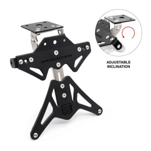 Η αναδιπλούμενη βάση πινακίδας είναι κατασκευασμένη από ανοδιωμένο αλουμίνιο και ανοξείδωτους συνδέσμους ώστε να παρέχει τη μέγιστη σταθερότητα ακόμα και στους πιο ισχυρούς κραδασμούς. Το κιτ περιλαμβάνει βίδες και παξιμάδια τοποθέτησης. Η βάση διαθέτει αναμονές ώστε να μπορεί να τοποθετηθεί σε πολλά μοντέλα, παρόλα αυτά πρόκειται για ένα universal προϊόν. Η βάση δεν είναι συμβατή με τα εργοστασιακά φανάρια στοπ και τα εργοστασιακά φλας και ως εκ τούτου θα πρέπει να συνδυαστεί με φανάρι και φλας BARRACUDA.