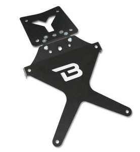Η βάση πινακίδας είναι κατασκευασμένη από ανοδιωμένο αλουμίνιο και ανοξείδωτους συνδέσμους. Είναι μελετημένη συγκεκριμένα γι'αυτό το μοντέλο ενώ περιλαμβάνονται βίδες και παξιμάδια για την τοποθέτηση. Η εγκατάσταση δεν απαιτεί καμία παρέμβαση στα εργοστασιακά μέρη. Η βάση δεν είναι συμβατή με το εργοστασιακό φως πινακίδας και τα εργοστασιακά φλας και ως εκ τούτου θα πρέπει να συνδυαστεί με φως πινακίδας και φλας BARRACUDA.