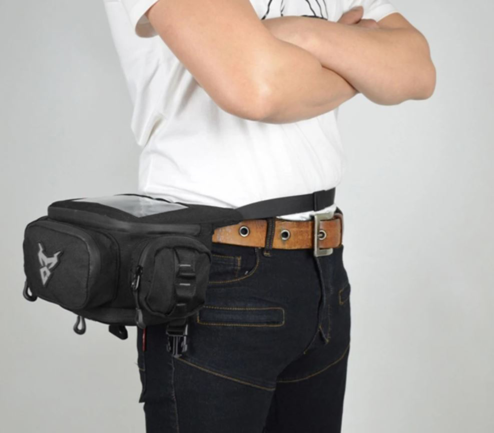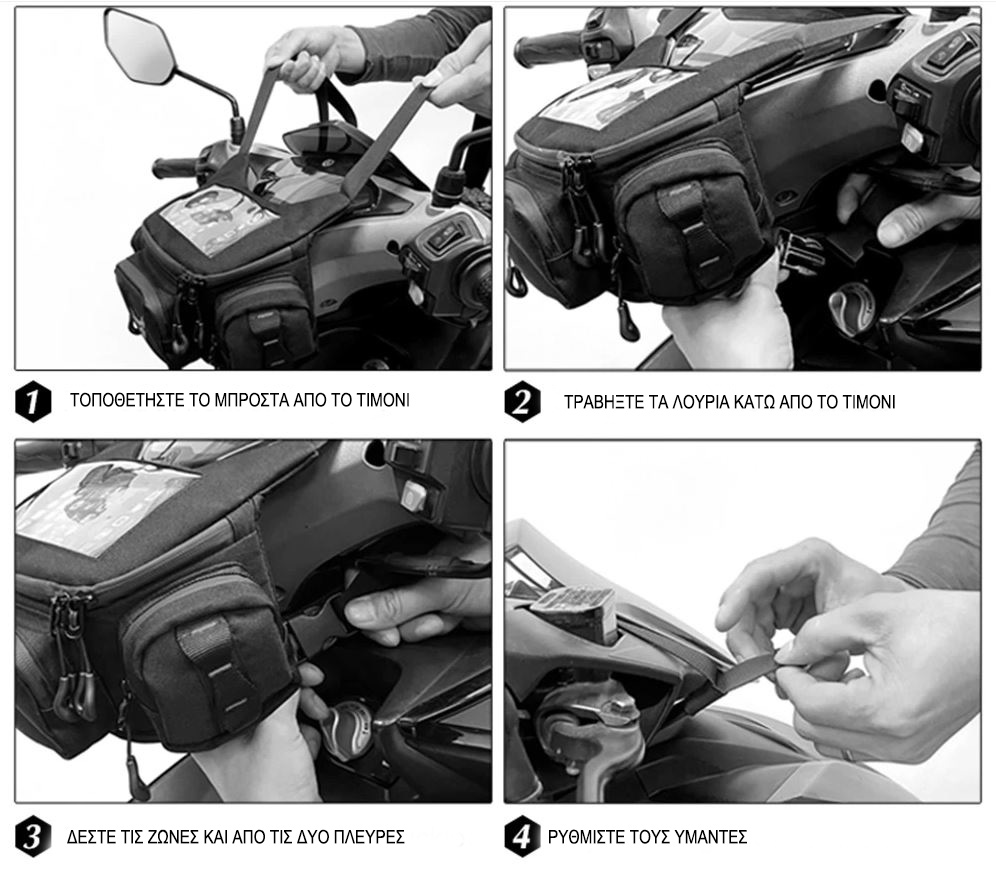 Φορίεται ως μπροστινό τσαντάκι μηχανής και ως τσαντάκι μέσης