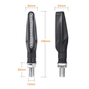Χάρη στο μικρό και κομψό του μέγεθος, ταιριάζει εύκολα σε πολλές μοτοσυκλέτες και βελτιώνει την εμφάνιση της. Η τεχνολογία LED προσφέρει χαμηλή κατανάλωση ρεύματος και μεγάλη διάρκεια ζωής σε σχέση με τα συμβατικά φλας.