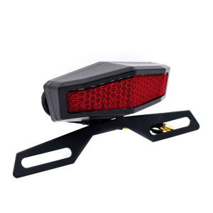 Universal οπίσθιο φανάρι μοτοσυκλέτας LED 12V με λειτουργίες στοπ, φλας κατεύθυνσης και φωτισμό πινακίδας. Το φανάρι έχει και βάση για την πινακίδα και είναι κατάλληλο για τα περισσότερα μηχανάκια.