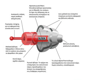 •Η οδήγηση, οι επικοινωνίες, οι ήχοι της μηχανής συνεχίζουν να ακούγονται επαρκώς λόγω των φίλτρων AlpineAcousticFilters™