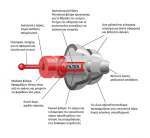 •Η οδήγηση, οι επικοινωνίες, οι ήχοι της μηχανής συνεχίζουν να ακούγονται επαρκώς λόγω των φίλτρων AlpineAcousticFilters™