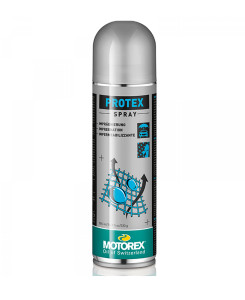 Motorex Protex Impregnation σπρέι αδιαβροχοποίησης για συνθετικές υφασμάτινες & δερμάτινες επιφάνειες. Το σπρέι Protex δημιουργεί μία υδροαπωθητική επίστρωση πάνω στην επιφάνεια. Ιδιαίτερα αποτελεσματική προστασία, μεγάλης διάρκειας.